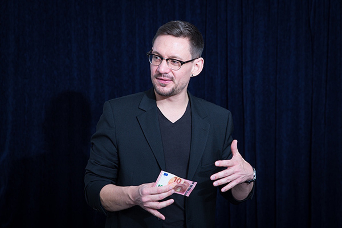 The artist switches between German and English as required, and the magic at the table works almost without language.